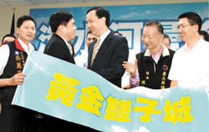 據臺灣《中國時報》報道,臺北市長郝龍斌與國民黨新北市長參選人朱立倫5日大陣仗召開記者會,公布“黃金雙子城--淡水河曼哈頓計劃”廣告片,這是在臺北市“花風暴”之后,郝、朱兩人首度同臺為選情造勢。郝、朱拿著“黃金雙子城、團結一定成”的布條,表達未來仍將持續推動雙城合作的決心。