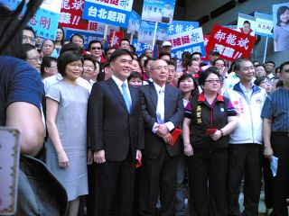 年底臺北市長選舉,身陷“花博風暴”的臺北市長郝龍斌到市選委會登記參選。國民黨黨中央包括國民黨前主席吳伯雄、副主席詹春柏、秘書長特別顧問趙少康、前悠游卡董事長連勝文、國民黨籍“立委”蔣乃辛、鄭麗文、蔡正元等人,到市選委會幫郝龍斌加油打氣。對于各界的支持及幫助,郝龍斌說,他的勝選信心大增,透過國民黨中央的協助,他更有信心會贏。(中國臺灣網  孫金誠)