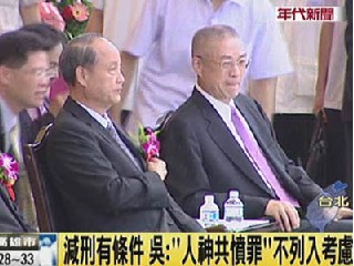 吳敦義今日出席;鶗罗k公大樓動土典禮受訪時表示,是否要辦理減刑,臺“法務部”還在評估中,如果評估結果是不辦,就不會辦;如果要辦,也會僅限于輕罪,絕不會包括死刑與人神共憤的犯罪,他也指出,“像強奸就是,貪污當然也是人神共憤”。(中國臺灣網 劉海偉)