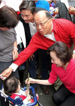 據“中央社”報道,國民黨臺中市長候選人胡志強11日起請假投入選舉,首場活動即到臺中市北屯區金谷市場拜票,國民黨秘書長金溥聰特別陪同,市場內“凍蒜(當選)”聲不絕于耳。