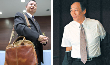 楊志良與郭臺(tái)銘面交公文包。 來(lái)源:臺(tái)灣《聯(lián)合晚報(bào)》