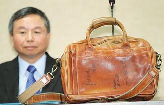 前“衛生署長”楊志良那只被媒體戲稱“脫了線”的舊公事包,在鴻海集團董事長郭臺銘的情義相挺下,以超過500萬元的天價買下,郭臺銘面交時,簽下五個字“ 好膽愛心包”。他希望拋磚引玉,讓臺灣多幾個有骨氣的政務官。