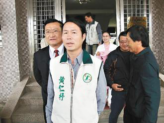 民進(jìn)黨“立委”黃仁杼(左二)、臺北市議員江志銘(左一)與電臺主持人昨天到北監(jiān)探扁。圖片來源:臺灣《聯(lián)合報》