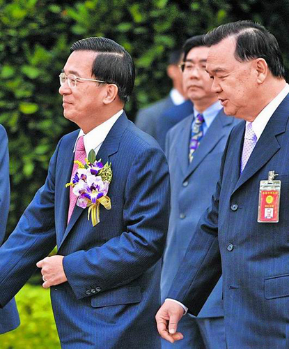 葉盛茂(右)受陳水扁(左)提拔出任前陳水扁當局情報機構主管,就連坐牢也將一路追隨陳水扁到臺北監獄。圖片來源:臺灣媒體
