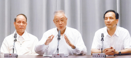 吳敦義(中)、朱立倫(右)與林中森(左),曾被視為臺當(dāng)局行政主管部門鐵三角。(圖片來源于:臺灣《聯(lián)合報》)
