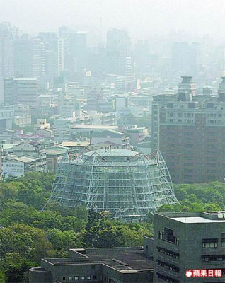 臺中市昨日上午天空灰蒙蒙,圖為臺中市科博館前植物園一帶。 來源:臺灣《蘋果日報》