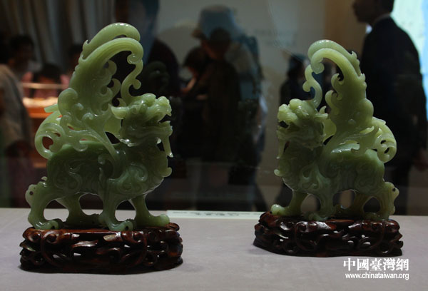 震旦館展示的玉雕。(中國臺灣網 張弛 攝)