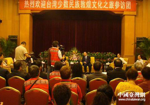 甘肅省人大副主任朱志良代表中共甘肅省委、省政府會見并宴請了“臺灣少數(shù)民族敦煌文化之旅”參訪團一行。甘肅省臺辦主任趙少智全程陪同參訪團進行了考察參訪。