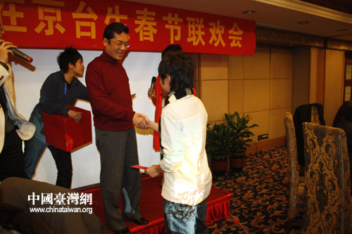 中國(guó)臺(tái)灣網(wǎng)1月13日消息 今天,由臺(tái)商自發(fā)資助、組織,臺(tái)灣留學(xué)大陸青年學(xué)生發(fā)展協(xié)會(huì)(臺(tái)生會(huì))主辦的2011年在京臺(tái)生春節(jié)聯(lián)歡會(huì),在前門建國(guó)飯店舉辦。本屆在京臺(tái)生春節(jié)聯(lián)歡會(huì)是第一次舉辦,共有220人出席。