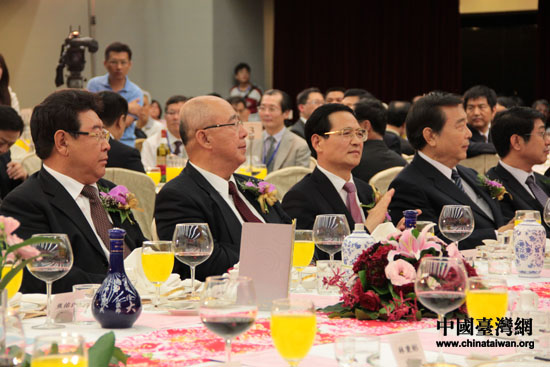 河北省委常委劉永瑞(左一)、中國(guó)國(guó)民黨榮譽(yù)主席吳伯雄(左二)、河北省副書記付志方(左三)、世貿(mào)中心董事長(zhǎng)王志剛(左四)出席開幕式酒會(huì)(攝影 中國(guó)臺(tái)灣網(wǎng) 陳寧)