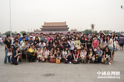 兩岸青年學(xué)生在天安門廣場合影留念(中國臺(tái)灣網(wǎng) 劉承思 攝)