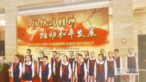 大陸少年合唱團獻唱抗日歌曲。(圖自臺灣“中時電子報”)