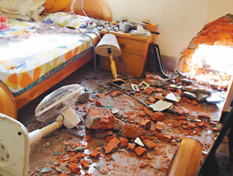 許姓屋主說,事發時,心中只有一個念頭就是“不可能”、“接著的念頭以為是爆炸”。還好天氣冷,夫婦蓋著厚被,本能抓起棉被蓋頭避開射來的磚塊、玻璃。