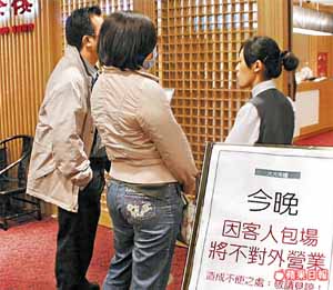 餐廳臨時貼出“因客人包場、將不對外營業”的公告。 來源:臺灣《蘋果日報》