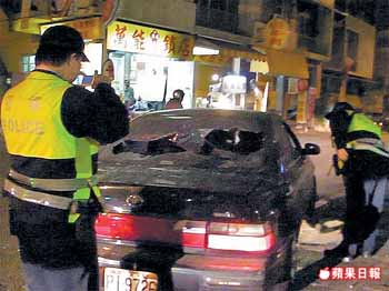 臺(tái)南一名女子的轎車,昨晚被飚車族莫名痛砸。 來(lái)源:臺(tái)灣《蘋果日?qǐng)?bào)》