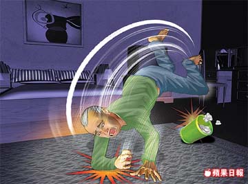 由于兒子為了省電不開燈,黃姓老翁摸黑走路,不慎跌倒摔斷了手。 來源:臺灣《蘋果日報》