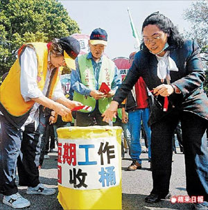 中國臺灣網2月11日消息 據臺灣《蘋果日報》報道,臺灣60多萬名失業者年關難過。曾吃牛糞抗議美國帶骨牛肉進口的臺灣大學社會所博士生朱政騏,昨潛入臺當局“勞委會”貼標語并扮“人肉春聯”,抗議派遣臨時工遭剝削、就業方案薪資過低;中高齡促進就業聯盟20多人昨也到臺當局“行政院”前,控訴短期就業計劃無助中高齡就業。