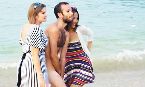 他表示,約十幾名外國人圍成一圈,似乎玩打賭游戲,其中五人輸了,被起哄后,脫掉身上僅有的小泳褲,光溜溜下水。不久他們回到沙灘穿起泳褲,繼續(xù)玩游戲,好像又玩輸了,再次脫個(gè)精光。