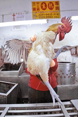 臺(tái)灣飯店業(yè)者演出“殺雞秀”遭裁罰10萬(wàn)元新臺(tái)幣,引起業(yè)者抗議,但在菜市場(chǎng)宰殺雞只則不受罰。圖片來(lái)源:臺(tái)灣《中國(guó)時(shí)報(bào)》