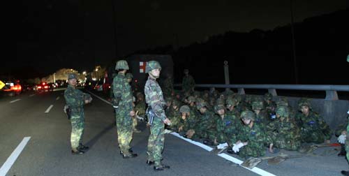 臺灣3號高速公路3.1公里處昨天下午發生嚴重山崩意外,臺軍在旁待命,必要時隨時準備徒手開挖。(圖:《聯合報》)