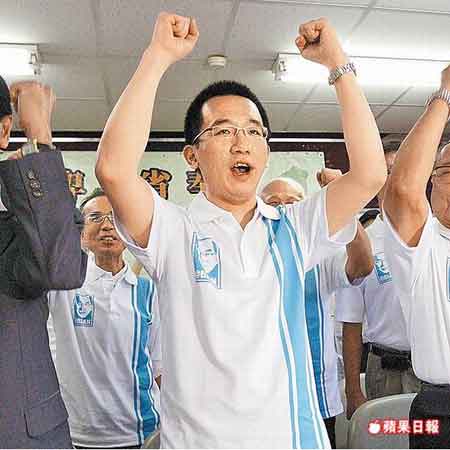陳致中昨宣布參選高雄市議員時(shí),左手戴著28萬元?jiǎng)诹κ勘怼D片來源:臺(tái)灣《蘋果日?qǐng)?bào)》