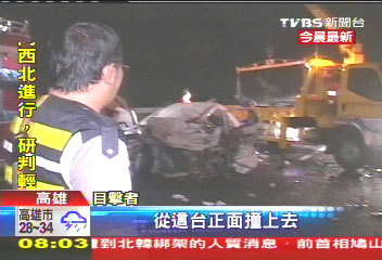 報(bào)道稱,這起重大車禍發(fā)生在昨晚10時(shí)30分左右,在高速公路10號(hào)西往東即高雄往旗山方向18.9公里的高雄縣燕巢路段,一輛由李姓男子駕駛的進(jìn)口轎車要往高雄方向,但據(jù)高速公路警察調(diào)查,李姓男子卻逆向上了高速公路,一路逆向行駛14公里。其間在20公里處一度被警察攔截下來,就在警察下車時(shí),李姓男子趁機(jī)踩油門逃跑,未料又行駛1公里多,迎面撞上三輛閃避不及的小轎車。其中第一輛被撞小轎車?yán)锩嬗?個(gè)成年人和兩個(gè)小孩。