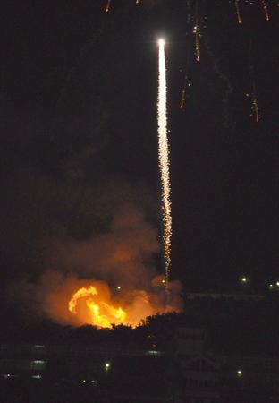 基隆市“雞籠中元祭”活動(dòng)燃放焰火不慎引發(fā)山火。(圖:臺(tái)灣《聯(lián)合報(bào)》)