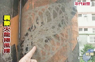 據(jù)臺(tái)灣“今日新聞網(wǎng)”報(bào)道,臺(tái)灣桃園縣龍?zhí)多l(xiāng)圣德村春源居社區(qū),最近連續(xù)幾次遭到雷擊后,電線桿或是民宅墻上竟然都出現(xiàn)龍形圖案,而且圖案上還有鱗片的紋路,似乎和龍?zhí)多l(xiāng)的“龍”字相呼應(yīng),也成了居民茶余飯后的閑聊話題。