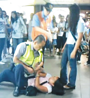 臺(tái)北市一名男警察在臺(tái)北車(chē)站查緝時(shí),跨坐在印尼籍女子身上許久,引起大批民眾圍觀、議論紛紛。 來(lái)源:臺(tái)灣《聯(lián)合報(bào)》