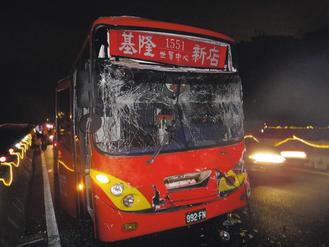 兩輛福和客運(yùn)中山高速公路上追撞 圖片來(lái)源:臺(tái)灣《聯(lián)合報(bào)》