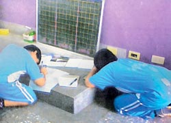 臺中縣某小五年級老師被學(xué)生家長爆料,強迫學(xué)生跪地寫字,老師辯稱只是讓孩子蹲著,家長出示以手機錄下的證據(jù),顯見孩子跪在講臺寫作業(yè)。圖片來源:臺灣《中國時報》