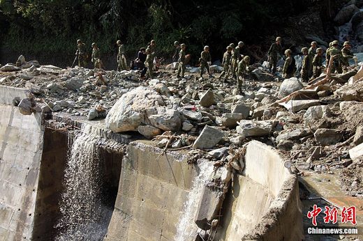 截至10月24日晚,臺灣蘇花公路失蹤人員搜索已過了“黃金72小時”,已判定失蹤的28人(其中包括20名大陸觀光客及領(lǐng)隊人員)依然杳無音訊。有關(guān)救援人員正在加緊重點區(qū)域的搜索。圖為當天下午蘇花公路114.5公里處塌方現(xiàn)場。