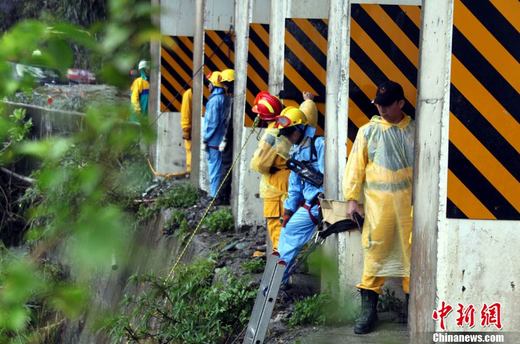 臺灣蘇花公路塌方事故已逾5天,事故發生的宜蘭縣一帶26日持續大雨。然而對失蹤者(包括18名大陸游客和2名大陸領隊)的海陸空三路搜索仍在持續。現場搜索進展艱難,其間并發生一名搜救隊員被砸傷的情況。中新社記者 王健 攝