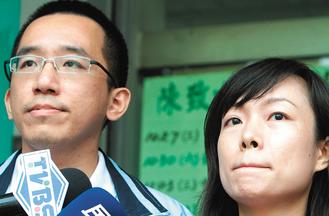 陳致中召妓案16日上午判決,陳致中被認定有召妓,陳致中(左)召開記者會表示會上訴到底,黃睿靚(右)則是眼眶泛紅表達對丈夫支持,也相信他絕對沒有召妓。 圖片來源:臺灣“聯合新聞網”