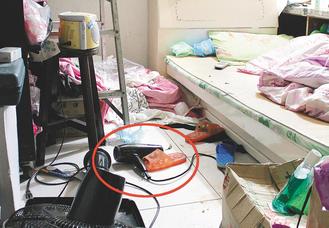 簡姓少女昨天使用吹風機(紅圈處),不知為何昏迷,造成小腿嚴重灼傷,其父發現后立刻將她送醫。圖片來源:臺灣《聯合報》