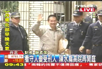 據臺灣TVBS電視臺報道,陳水扁因為龍潭購地弊案、陳敏薰人事案有罪定讞,“高院”定出17年6個月的合并執行刑,在2日發監服刑后,今天(21日)“高院”審理“機密外交案”,首度傳喚阿扁到庭。