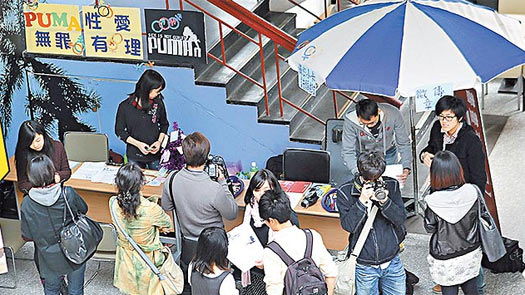 臺(tái)大學(xué)生在校內(nèi)宣揚(yáng)“多元性伴侶無罪”觀念,引發(fā)學(xué)生和網(wǎng)友討論。圖片來源:臺(tái)灣蘋果日?qǐng)?bào)