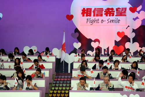 資料圖:臺灣各界舉行“相信希望Fight &Smile 募款晚會”,為日本地震募得7.5億(新臺幣)。