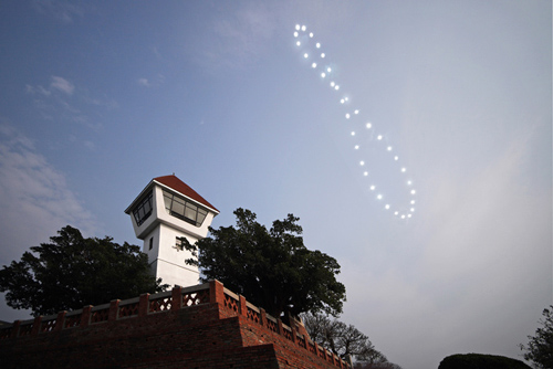 周銀王解釋,“日行跡”就是從地球往宇宙觀看,太陽一年中在天空里所行走的路徑,所以只要在固定時間、方位、仰角拍攝記錄太陽一年,就能記錄出太陽一年里行走了一個“8”字型的路徑。若是早上或傍晚低仰角時拍攝太陽,會是平躺的“8”字,中午時分拍攝,就是直立的“8”字。(中國臺灣網 馮江)