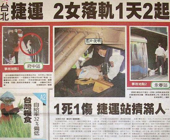 臺(tái)灣《聯(lián)合晚報(bào)》以頭版頭條報(bào)道兩名上班族跳軌輕生事件。圖片截自臺(tái)灣《聯(lián)合晚報(bào)》