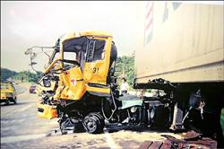 徐名峰駕駛的大貨車,從車禍現場可看出車毀嚴重程度。圖片來源:臺灣媒體