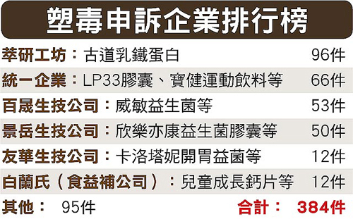 塑毒申訴企業(yè)排行榜。圖片來源:臺(tái)灣媒體