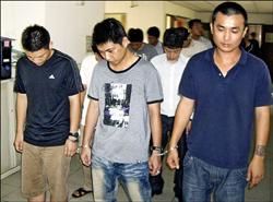 蘇某(最后排)帶大批幫眾去討債,統(tǒng)統(tǒng)被警方逮捕。圖片來源:臺灣媒體