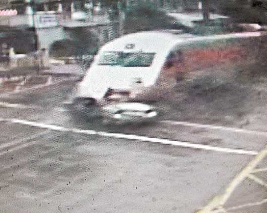 監視器拍下轎車被自強號火車撞上的瞬間。圖片來自臺媒