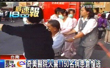 昨天下午2點55分,臺南奇美醫院傳出火警,濃煙瞬間彌漫整個醫院,院方緊急疏散所有病患,正在開刀的醫生護士,都來不及脫下手術服,全部跑出醫院。病患:“7樓全部都是煙,看不到路,霧蒙蒙的,嚇我一跳,根本走不快。”