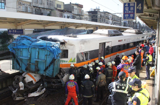 中國臺灣網1月17日消息 據臺灣《聯合報》報道,臺鐵太魯閣號17日上午8時42分行經桃園埔心站時,有砂石車闖越平交道,造成太魯閣號與砂石車對撞,列車前三個車廂出軌,砂石車則被拖行近500米,才在埔心火車站停下,目前共有8男14女、共22人受傷。不幸的是,太魯閣號列車司機蔡崇輝不幸在送醫途中傷重不治,砂石車駕駛則被警方帶到楊梅分局偵訊中。