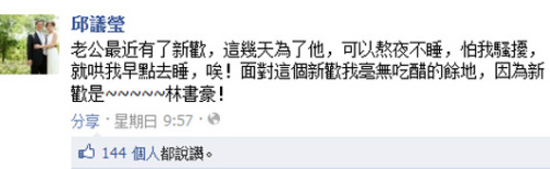 老公迷“豪小子”林書豪 綠營漂亮寶貝邱議瑩臉書抱怨