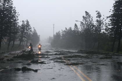 澎湖道路上堆滿折斷的樹枝。圖片來(lái)自臺(tái)媒