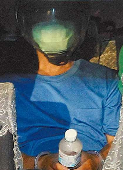 卓西雄自首后被上銬、戴安全帽,押上警車帶到埋尸地挖出尸體。(圖片來自臺媒)