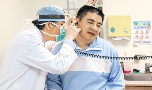 陳光標1日在臺灣接受健檢,圖為耳窺檢查。(圖片來源:臺灣《旺報》)